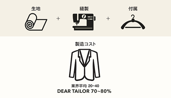 業界平均 20%~40%と言われる中、ディアテーラーは70%~80%の高い割合で本物を手に入れやすくご提供。バーバーという本業があるからこそできることです。